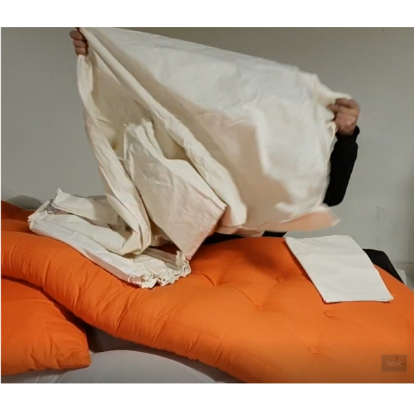 The cover comes with a zipper around and on the underside of the pillows so that it is easy to take on and off. With the cover, the sofa gets a slightly different look, as the buttons no longer become visible.