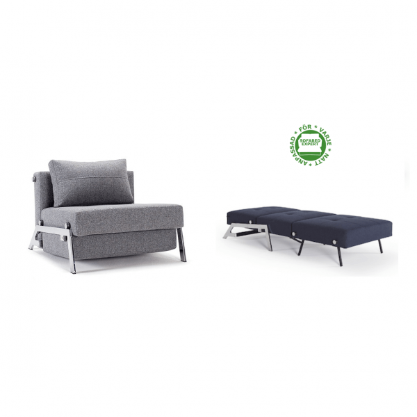 Cubed 90 Chrome is an easy to use armchair bed with legs that automatically fold out when you fold the armchair into a bed. There is storage space available in the hidden bedding box. The armchair is available in four standard fabrics.