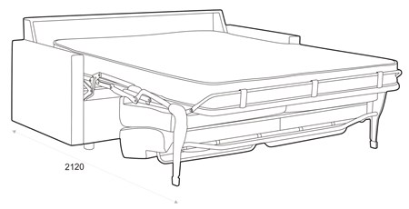 Exceptionally comfortable seats with down padding in seat and back cushions. The sofa bed is made to in one single motion without removing seat or back cushions fold out the bed.