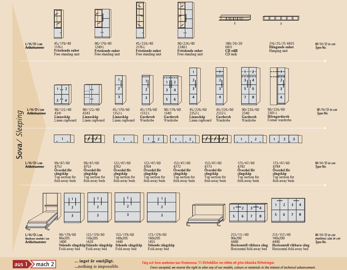 OBS! Alla sängskåp skall monteras fast i väggen, är man osäker rekommenderar vi att man anlitar en montör som vet hur man fäster tunga saker i en vägg så att väggen håller för vikten när sängen fälls ner. T.ex en gipsvägg håller inte om man inte hittar och fäster i en regel. Har du frågor angående montering är du givetvis välkommen att ringa så hjälper vi dig. Vi tillhandahåller själva monteringslösningar inom Skåne och kan förmedla tjänsten i stora delar av Sverige.