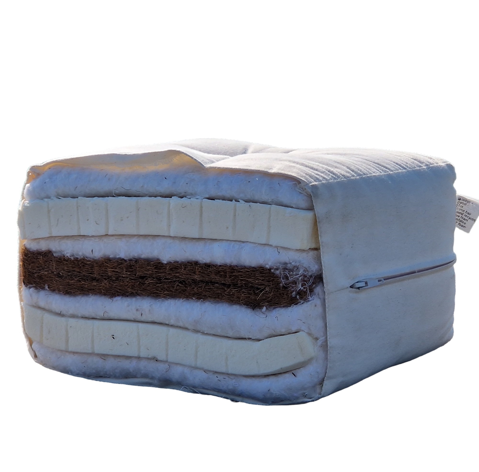 A wonderfully comfortable slightly taller futon mattress with a 25 cm height that is handcrafted in Europe. The mattress is made of 100% natural materials. It has 4 soft cotton outer layers, 2 natural latex and in the centre there is a coconut fibre layer. All fabrics are made of 100% cotton.
