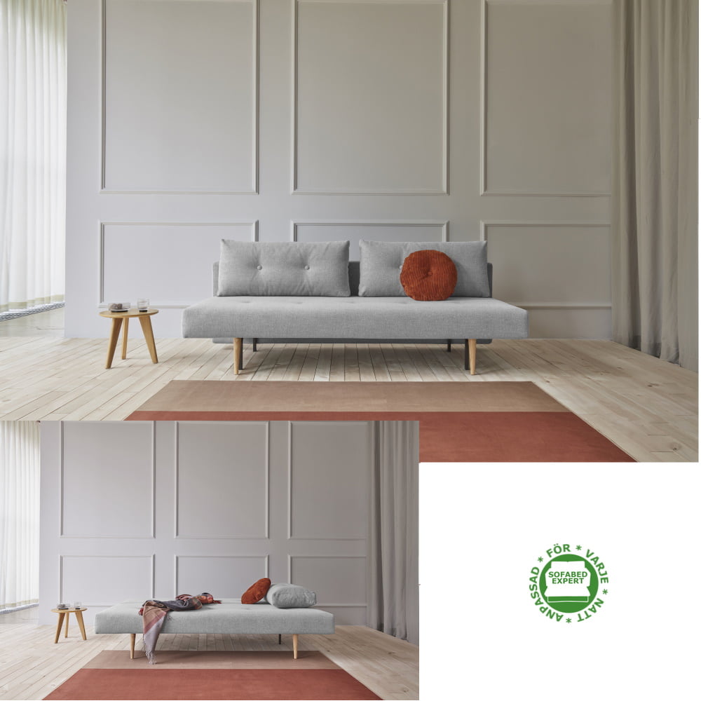 Recast with light Styletto legs 3-seat sofa bed. Attractive design from Danish Innovation Living.
