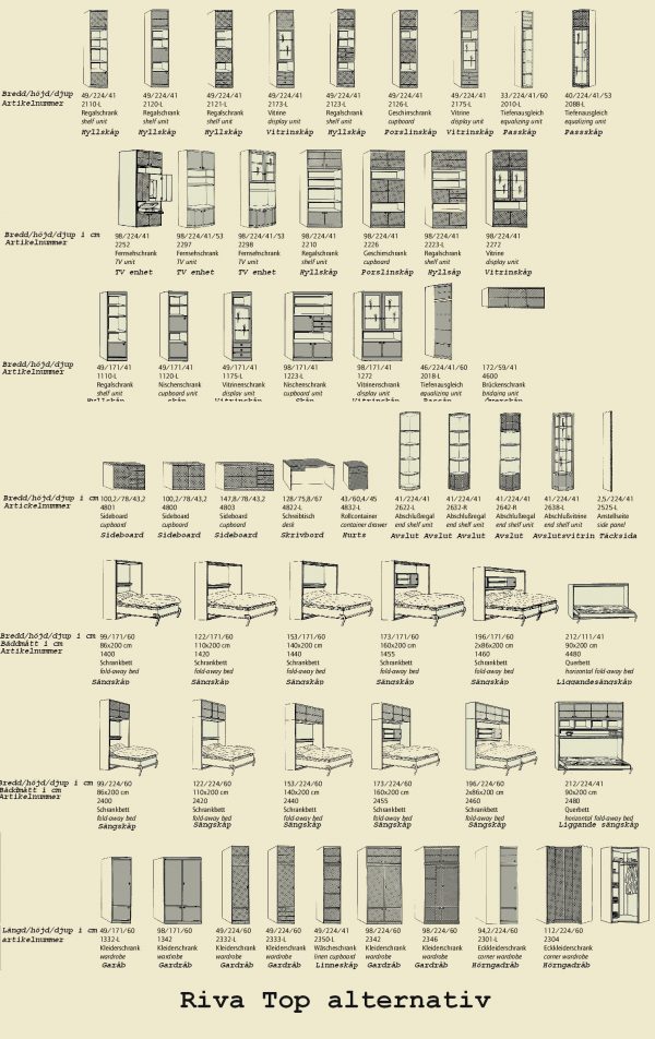 Riva top ingår i en stor sängskåpsserie från Tyska Nehl Wohn Ideen. I Riva top serien finns det hundratals valmöjligheter. Den kommer under året ut även översatt till Svenska.